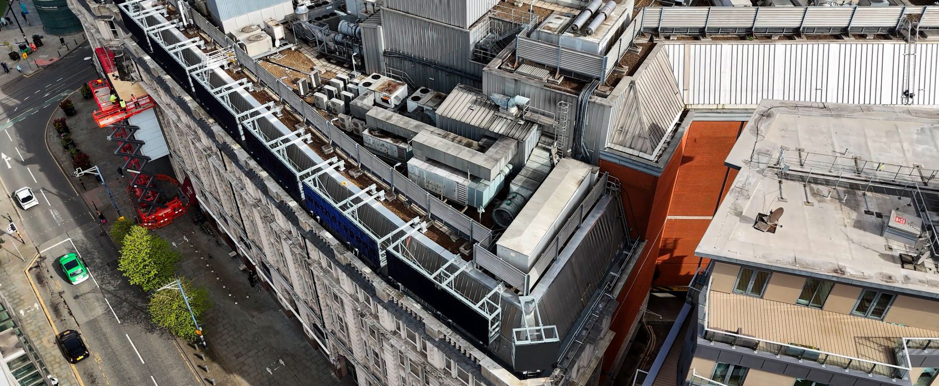 Complete Roofing Systems was engaged to address critical issues with the existing roof at Printworks, the iconic Manchester multi-purpose destination whilst it was undergoing a major refurbishment programme. The primary objective was to make the roof watertight to prevent further damage. Additionally, the project included installing 114 new steel stanchions to support new visual display screens. Each stanchion required multiple site visits during installation, adding another layer of complexity to the project.